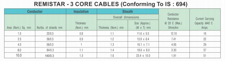 Special 3 Core Flat cable are manufactured for critical space requirement, protection against indefinite immersion in water under specified conditions, protection against rain water and against ingress of small solid foreign bodies.